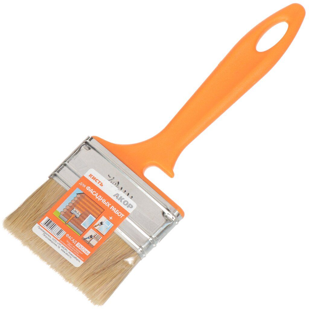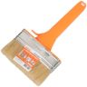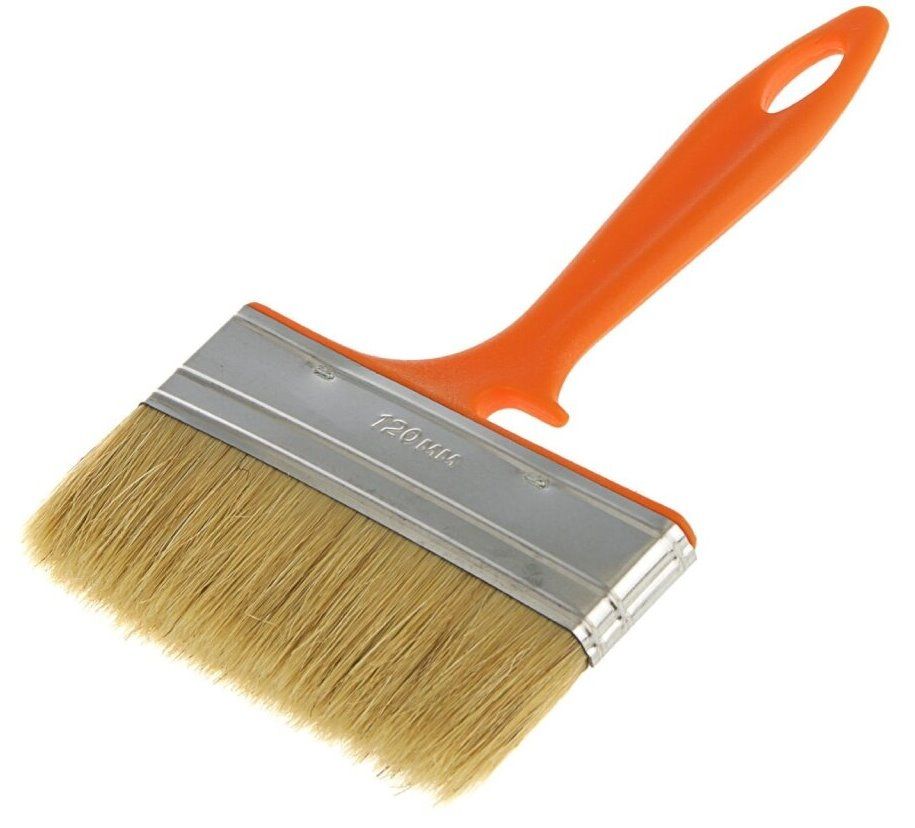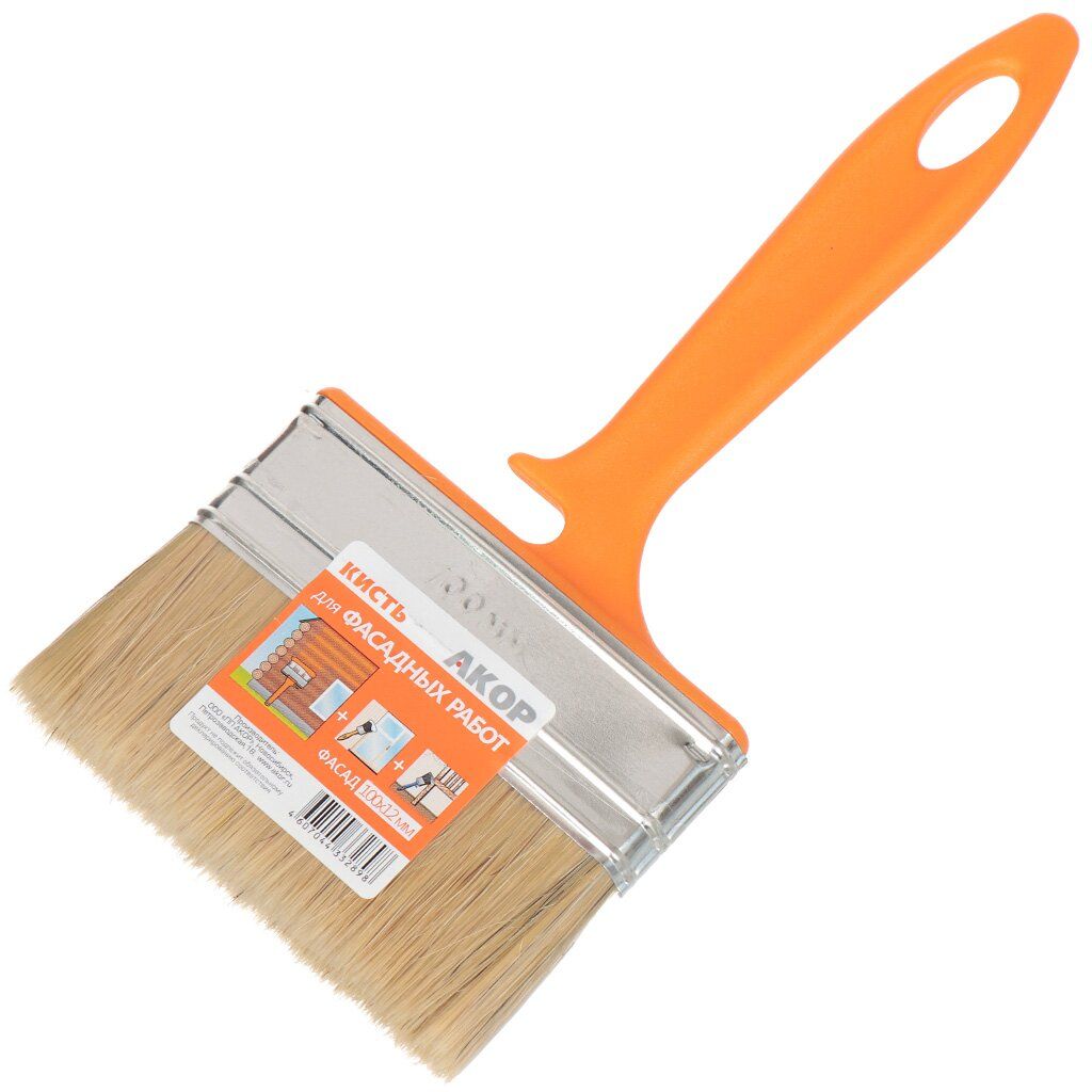 Кисть применяется для фасадных работ. Кисти разработаны для работ с большими площадями. Продукт выполнен из густой, плотной набивки по сравнению с прочими кистями. Щетина выполнена из натурального волокна. Рабочая часть надежно закреплена бандажом из стали. В пластиковой рукоятке имеется отверстие для подвешивания и специальный крючок для крепления на банку.