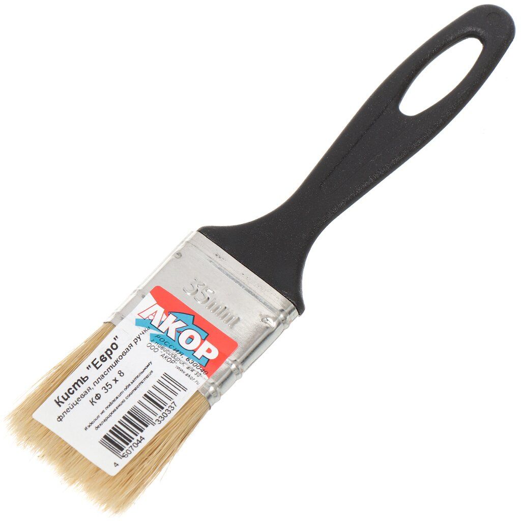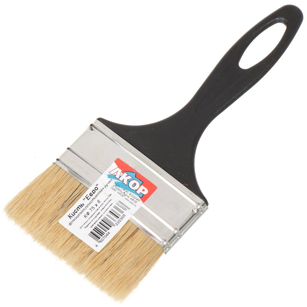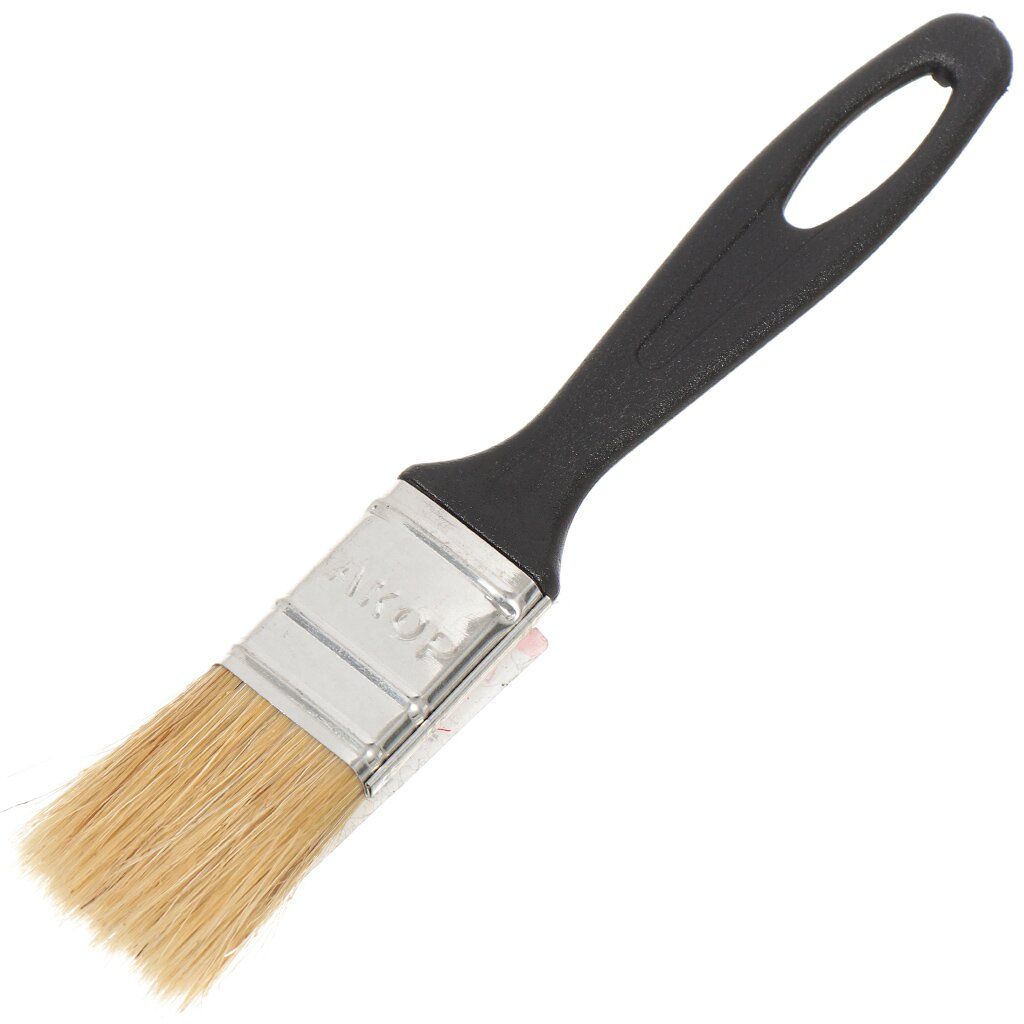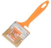 Плоская кисть - ручной малярный инструмент с удобной пластиковой ручкой и со светлой натуральной щетиной. Используют для нанесения лакокрасочных материалов на поверхности стен, потолка и различных конструкций.