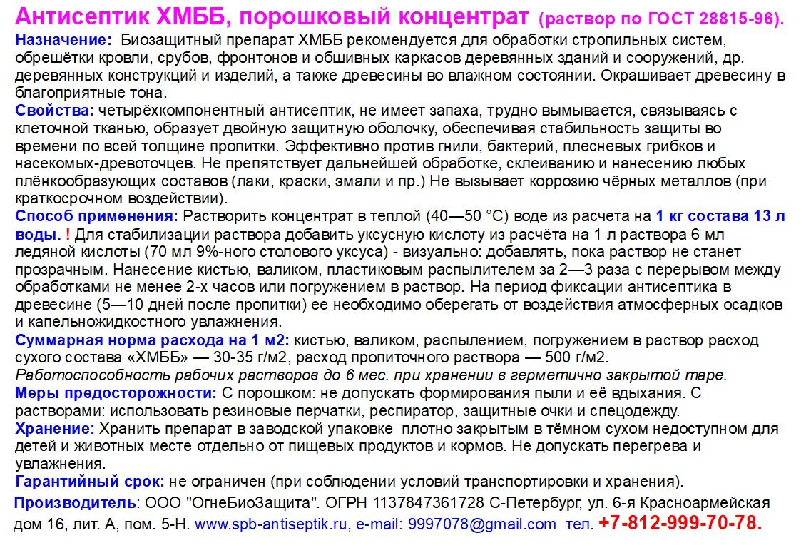 Комплексный антисептик-инсектицид ХМББ 1128. Сухой концентрат.