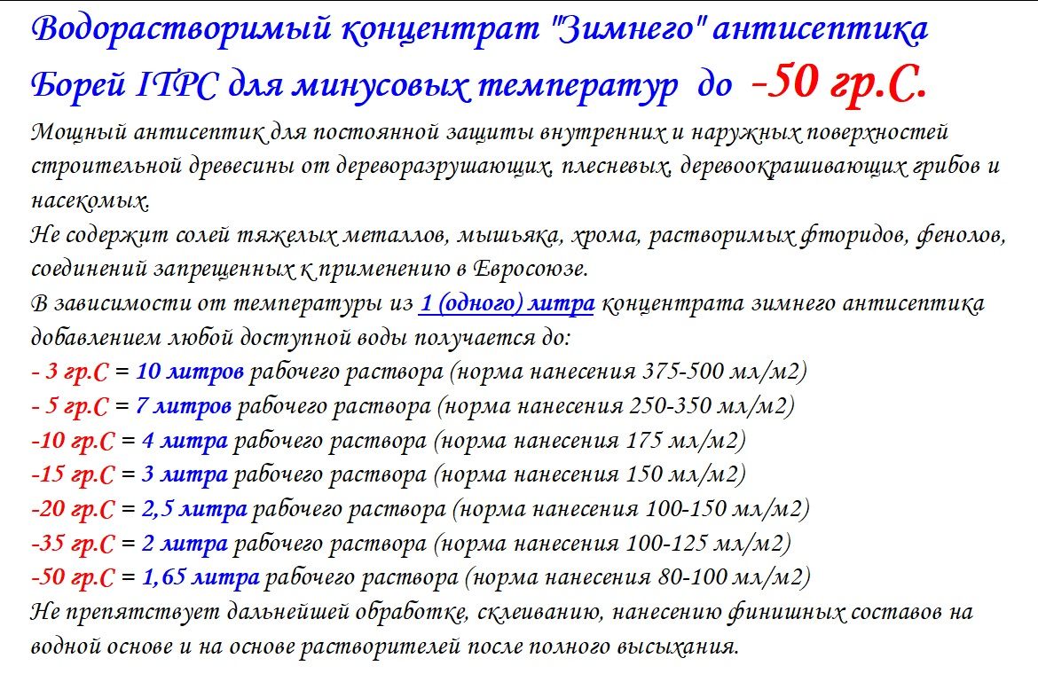 -50 гр.С = 1,65 литра рабочего раствора (норма нанесения 80-100 мл/м2)