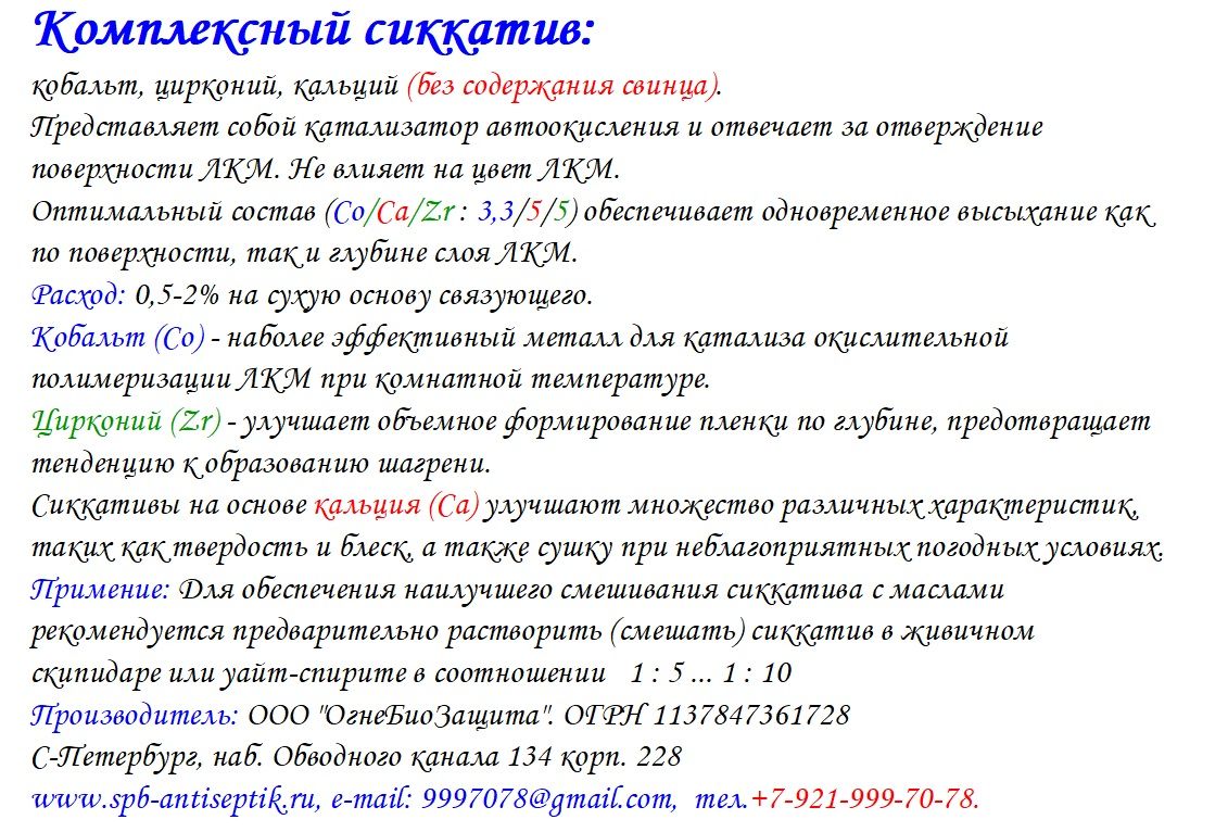 Кальций является вспомогательным сиккативом отвечающим за твердость и некоторые другие характеристики.