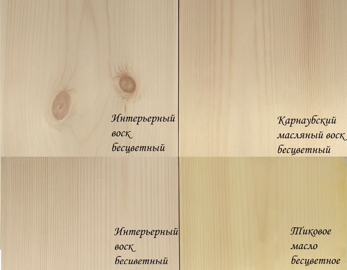 Бесцветный воск сохраняет без изменений исходный цвет древесины (не желтит дерево).